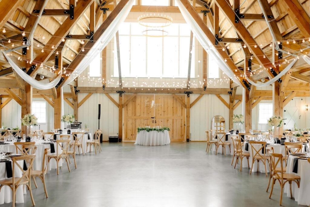 This design style pairs beautifully with Breckenridge Barn. The neutral tones of the venue provide a stunning backdrop for classic florals, allowing arrangements to feel elevated without overwhelming the space.